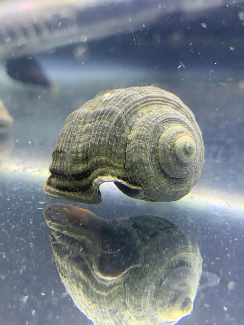 Mirateta Celebensis Snails have light gray, left-coiling shells that are very hard and rugged. They are very passive snails but should only be kept by experienced keepers. These snails are best kept in an aquarium that isn't totally filled so they can climb out of the water.