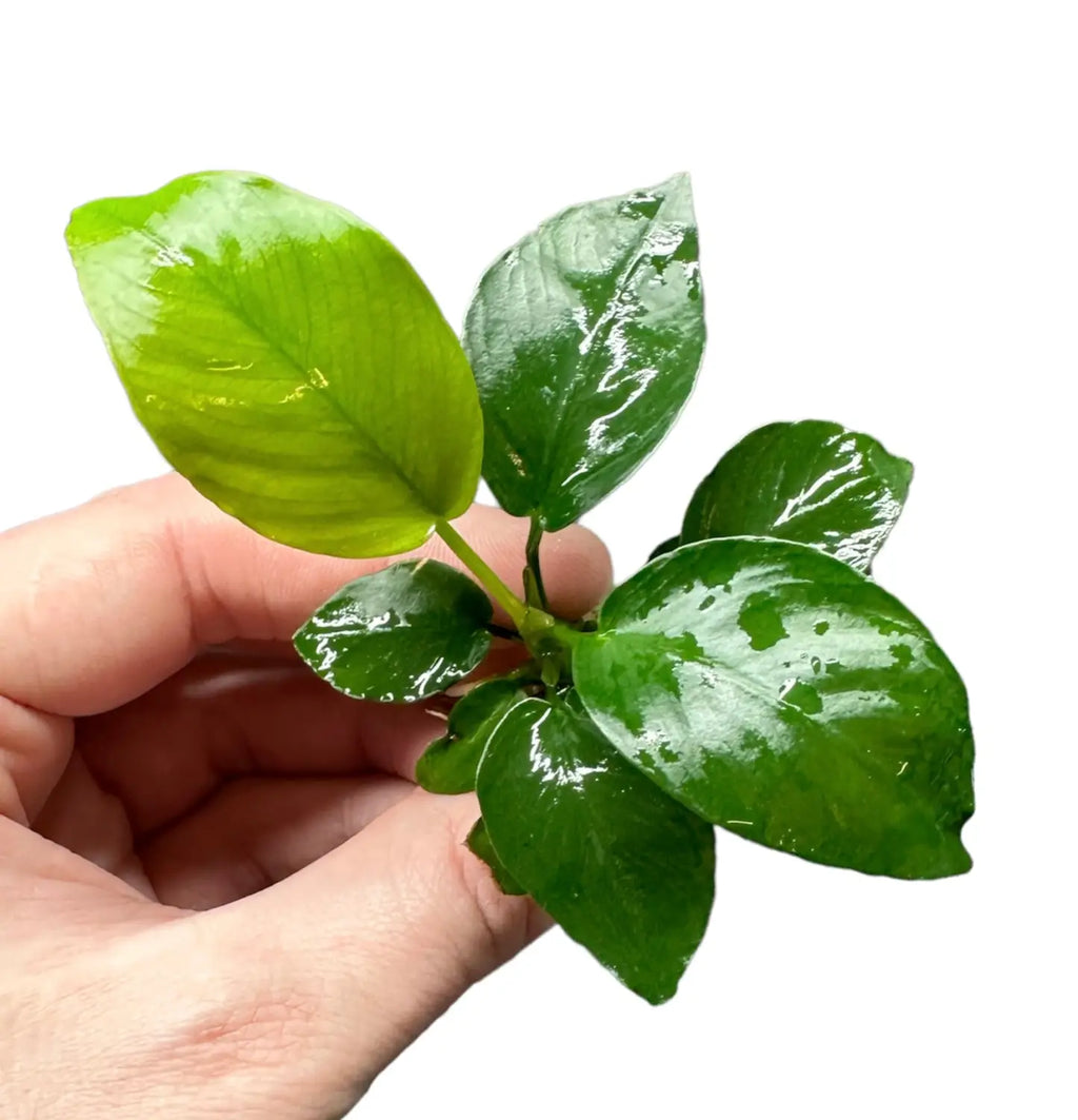Anubias Nana (Dwarf Anubias) is the second smallest species of anubias. Very high in demand, this plant is indigenous to Africa but farmed all over the globe. It is extremely hardy and great for beginners as it can adjust to a big range of water parameters. This is a plant that can be grown in the mid-ground of any aquarium, but does best when attached to rocks, driftwood, or decoration.