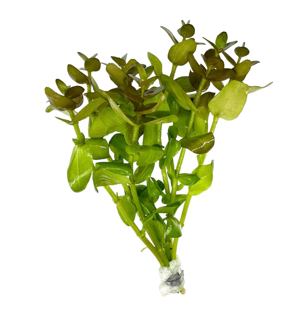 Bacopa Caroliniana Red, is a mid-ground/background plant native to North and Central America. This unique plant is quite rewarding when grown properly and can tolerate different water parameters. When grown submersed and under the proper lighting, this plant develops broad, spade like leaves that are mostly green with a light shade of red on the tip.
