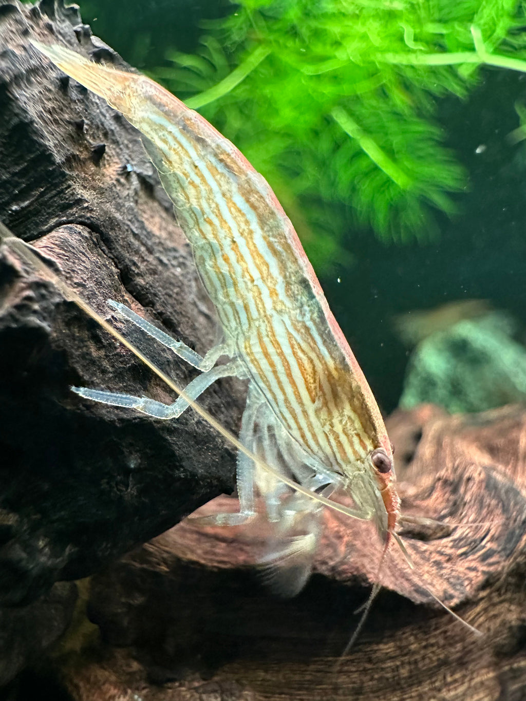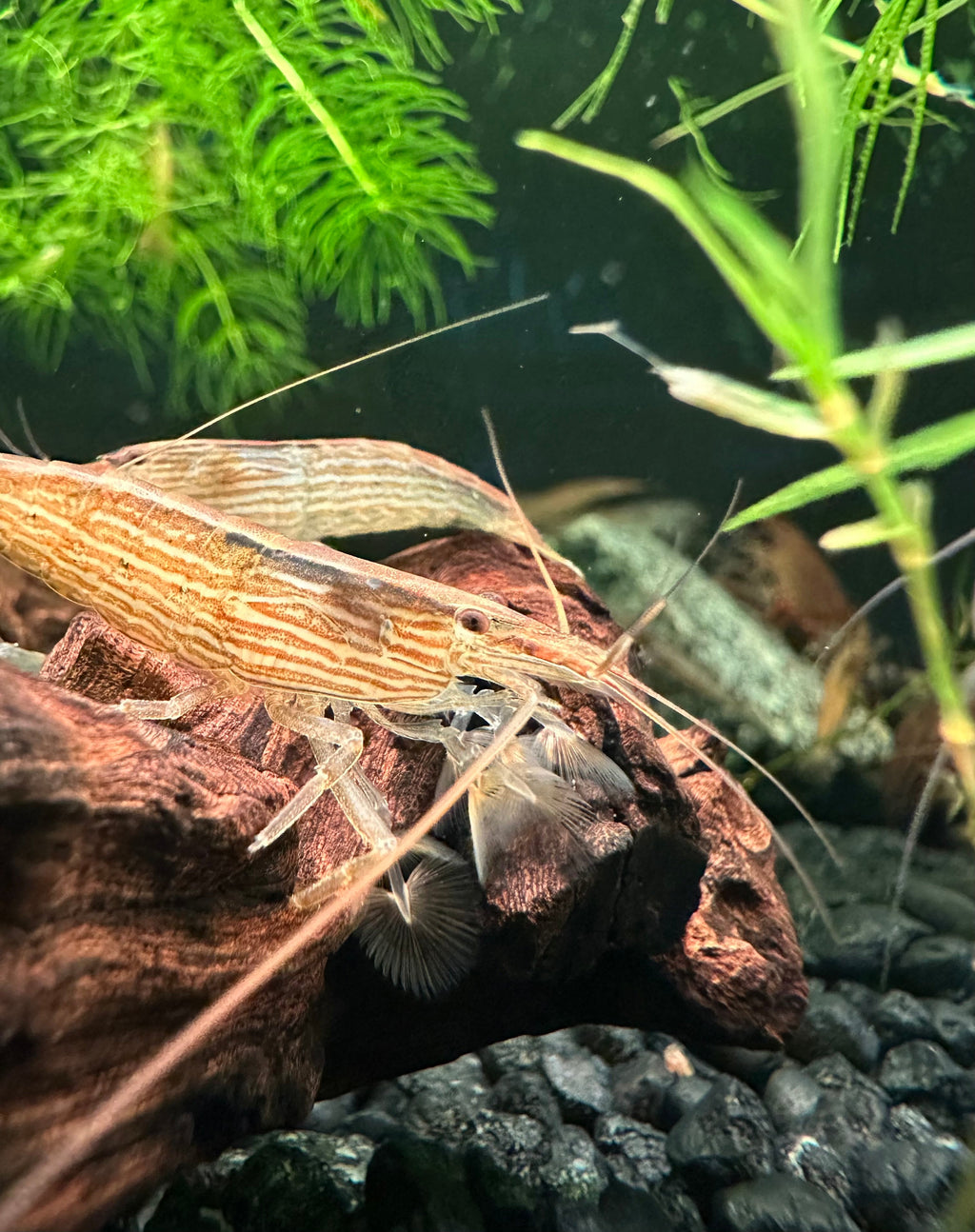 The bamboo shrimp is naturally found in Indonesia, where the Moluccas archipelago forms, but has been also found in Thailand, Malaysia and Sri Lanka. These shrimp are super peaceful and can grow to about 3.5". Although they are big, they should never be kept with dominant or aggressive fish - a peaceful, community tank is always the best environment for them to thrive.