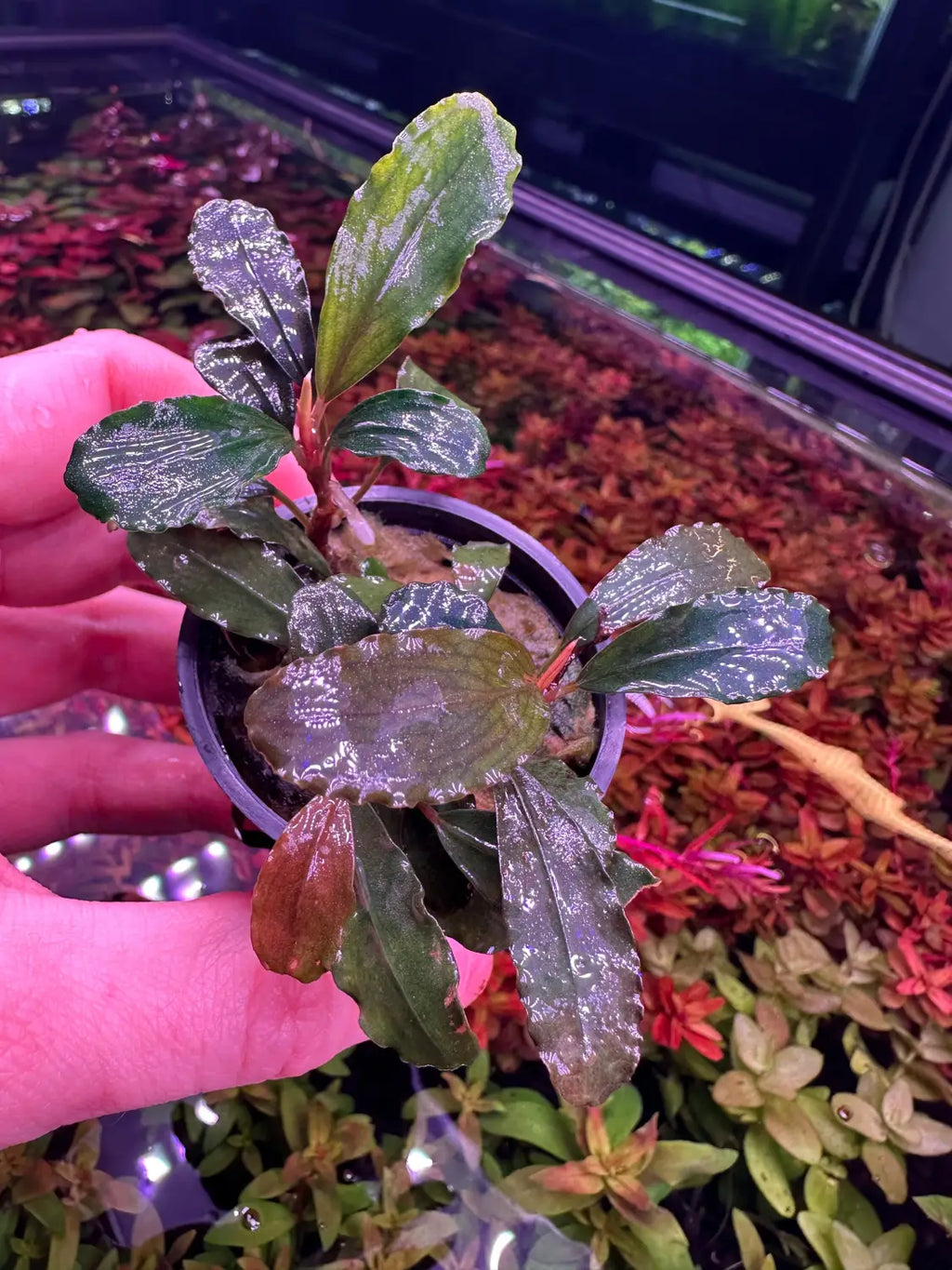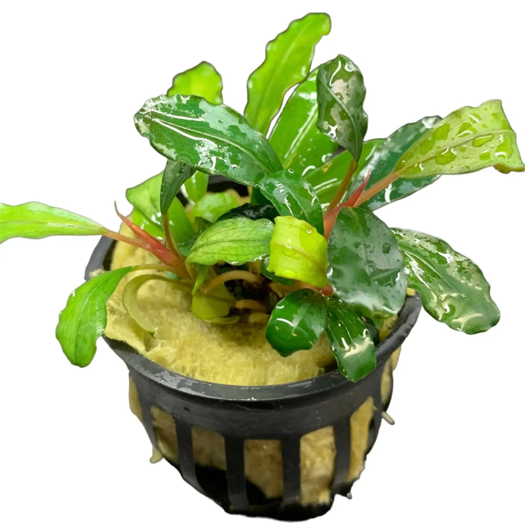 Originating from Borneo, Indonesia, this plant is quite unique and revolutionary. Even thought it is somewhat new in the aquarium hobby, it has been gaining a lot of popularity because of its low level of maintenance and easy care. This is a plant that can be grown in the foreground or mid-ground of the aquarium, as well as attached to any rocks or decoration. This unique plant has green long and ruffled leaves that only grow to about 2".