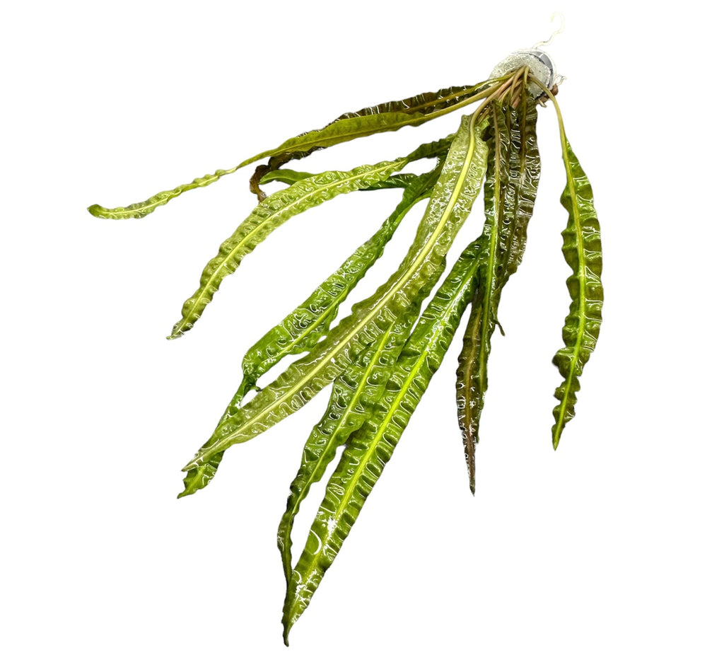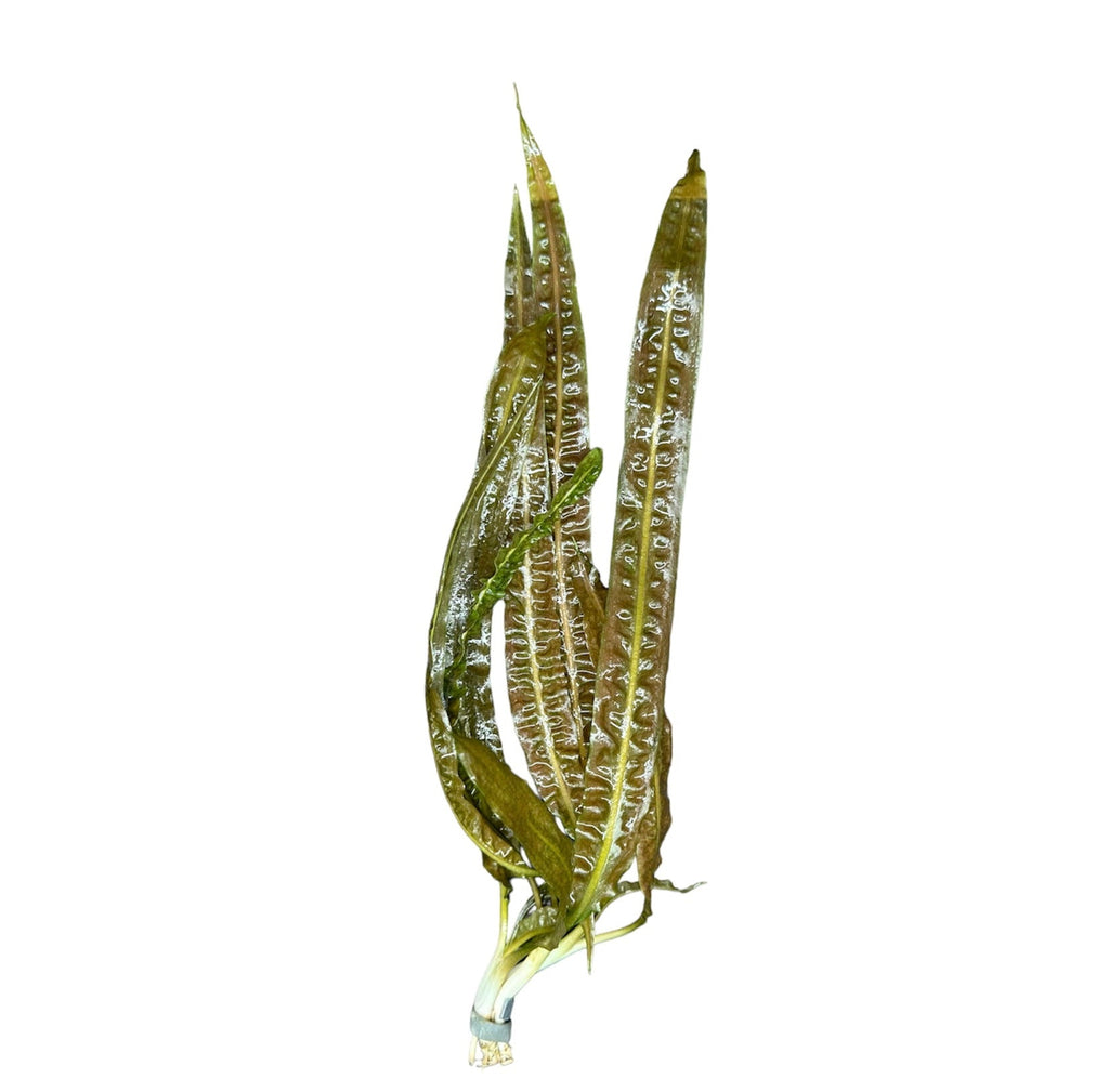 This hardy and undemanding plant is a mid-ground plant native to the shallow rivers of Thailand. Just like other Crypt species, this one requires stable water parameters and can't be moved all the time as the leaves will start to melt. It does not require CO2 injection but benefits from it as well as liquid fertilizers. This plant has big, elongated and wavy leaves with green/brownish coloration.