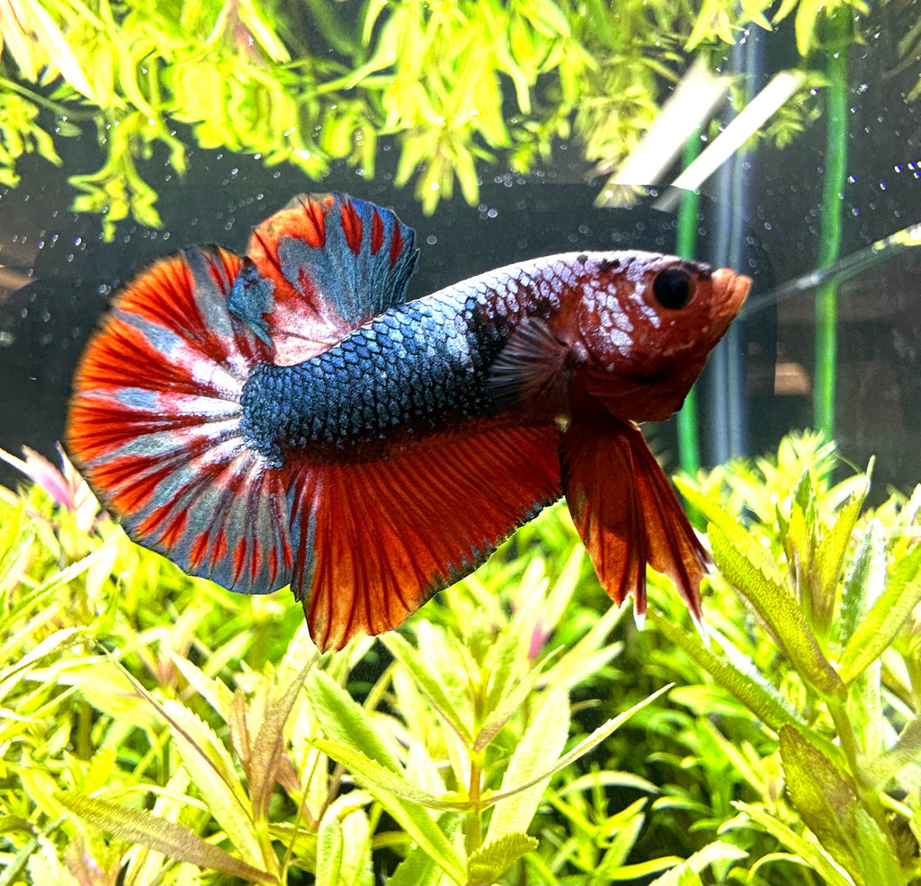 Originating from Asia, betta fish are quite common in the aquarium hobby. They populate rice paddies, marshes, ditches, and any Asian slow-moving waters that provide shelter and are densely planted. Male bettas are aggressive towards each other and should be kept by themselves. Female bettas on the other hand, can be quite peaceful with each other and other aquarium fish.