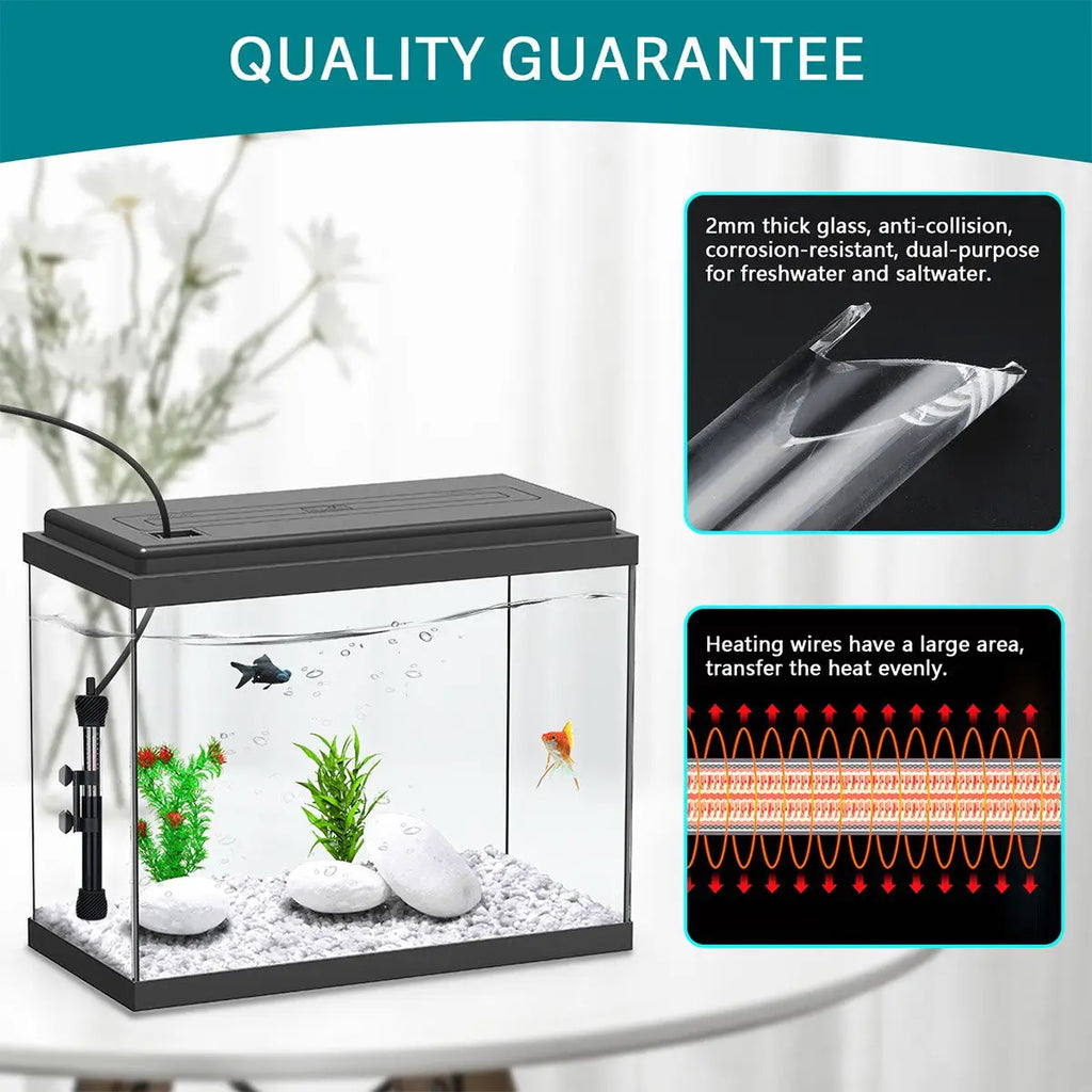 This Hygger Aquarium Heater is certificated by ETL with quality advantage. This aquarium heater is double-protected and has passed UL certification. It is a safe product to use. For safety, a fuse is installed inside. When the aquarium heater is plugged in, the fuse will be automatically disconnected after the heater is out of the water for more than 3 minutes, and the fish tank heater will not be damaged.