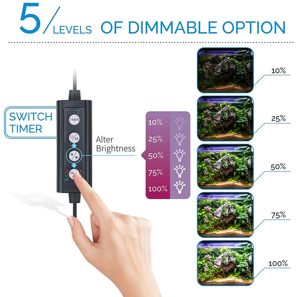This LED fish tank light is water proof and easy to clean and wipe, so there is no need to worry even if it falls into the water briefly. With the separable adapter, there is no need to replace the whole light even if it is damaged. The extendable bending bracket can be adjusted in length, and can be applied to various freshwater tanks. Thicken aluminum increases heat dissipation efficiency.