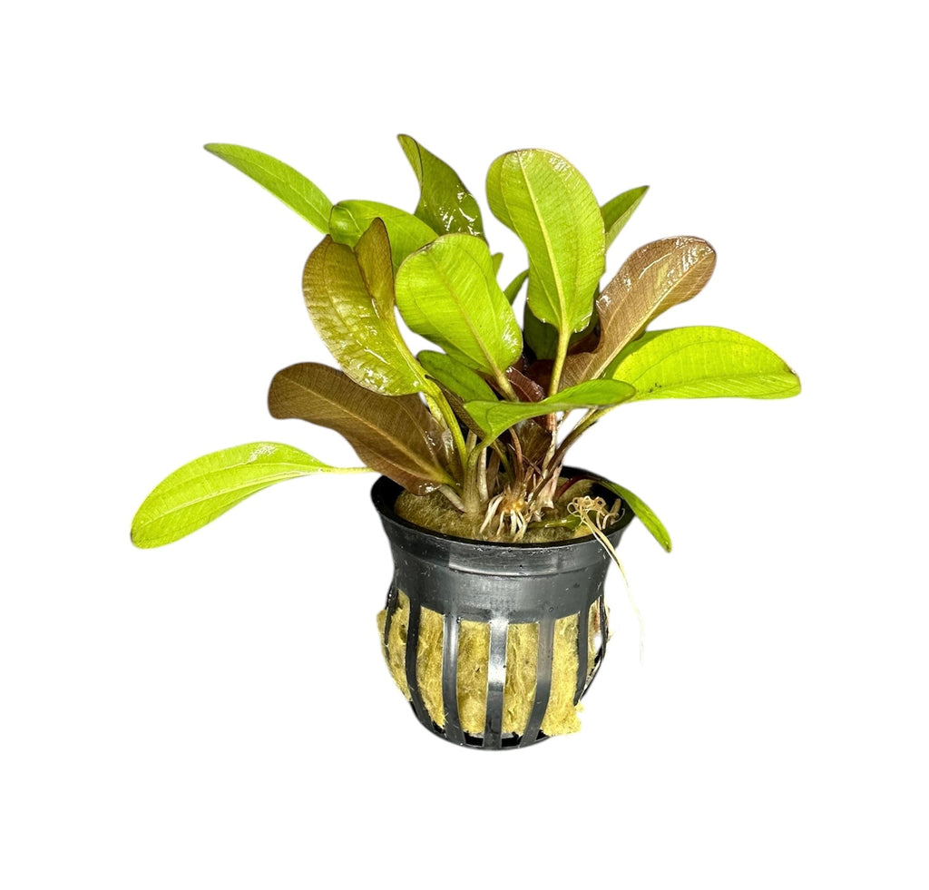 The Kleiner Bar Sword is a hybrid plant between an Echinodorus barthii and Echinodorus Uruguayensis. Its foliage is absolutely stunning - this plant features broad, green leaves which will convert to be completely copper/red color once submerged and if provided with the correct parameters, nutrients and lighting. Native from North, Central, and South America, this amphibious plant will grow out of water if not pruned from time to time.