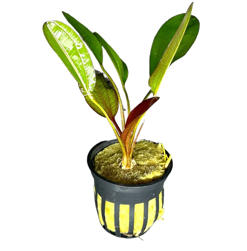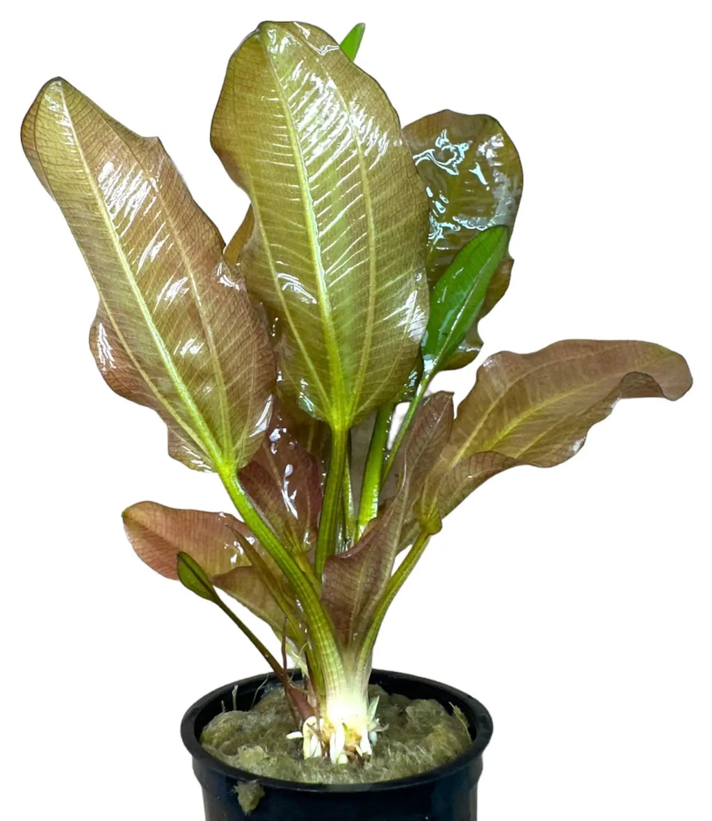 The Kleiner Bar Sword is a hybrid plant between an Echinodorus barthii and Echinodorus Uruguayensis. Its foliage is absolutely stunning - this plant features broad, green leaves which will convert to be completely copper/red color once submerged and if provided with the correct parameters, nutrients and lighting. Native from North, Central, and South America, this amphibious plant will grow out of water if not pruned from time to time.
