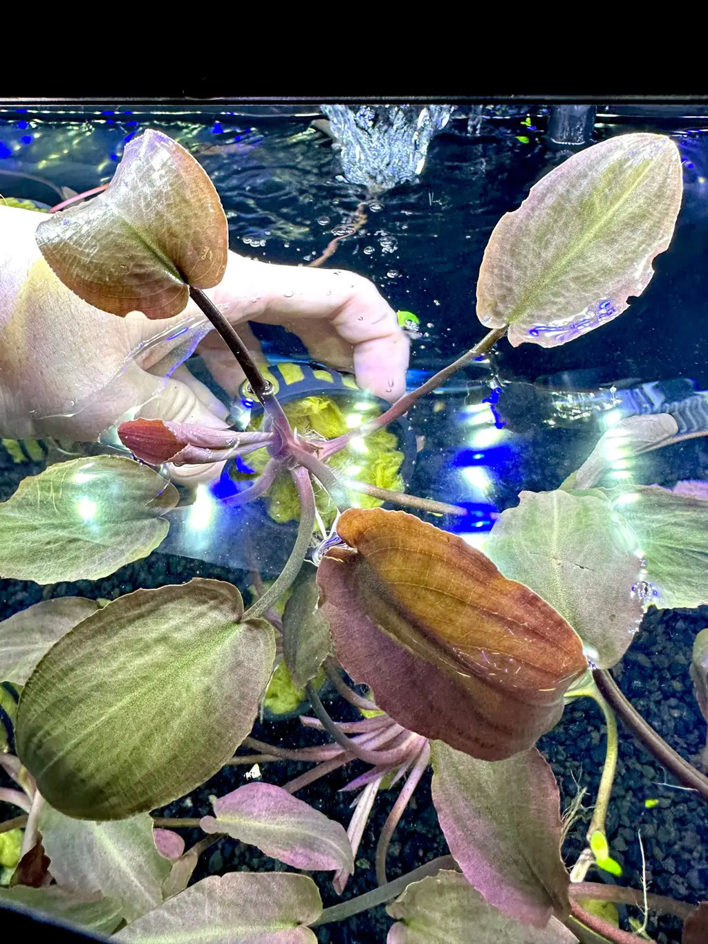Lagenandra Meeboldii 'Red' is a unique, rare plant originating from India. This plant belongs to the Araceae family, which is the same family as bucephalandra, but its appearance and root system is extremely similar to bigger cryptocoryne.