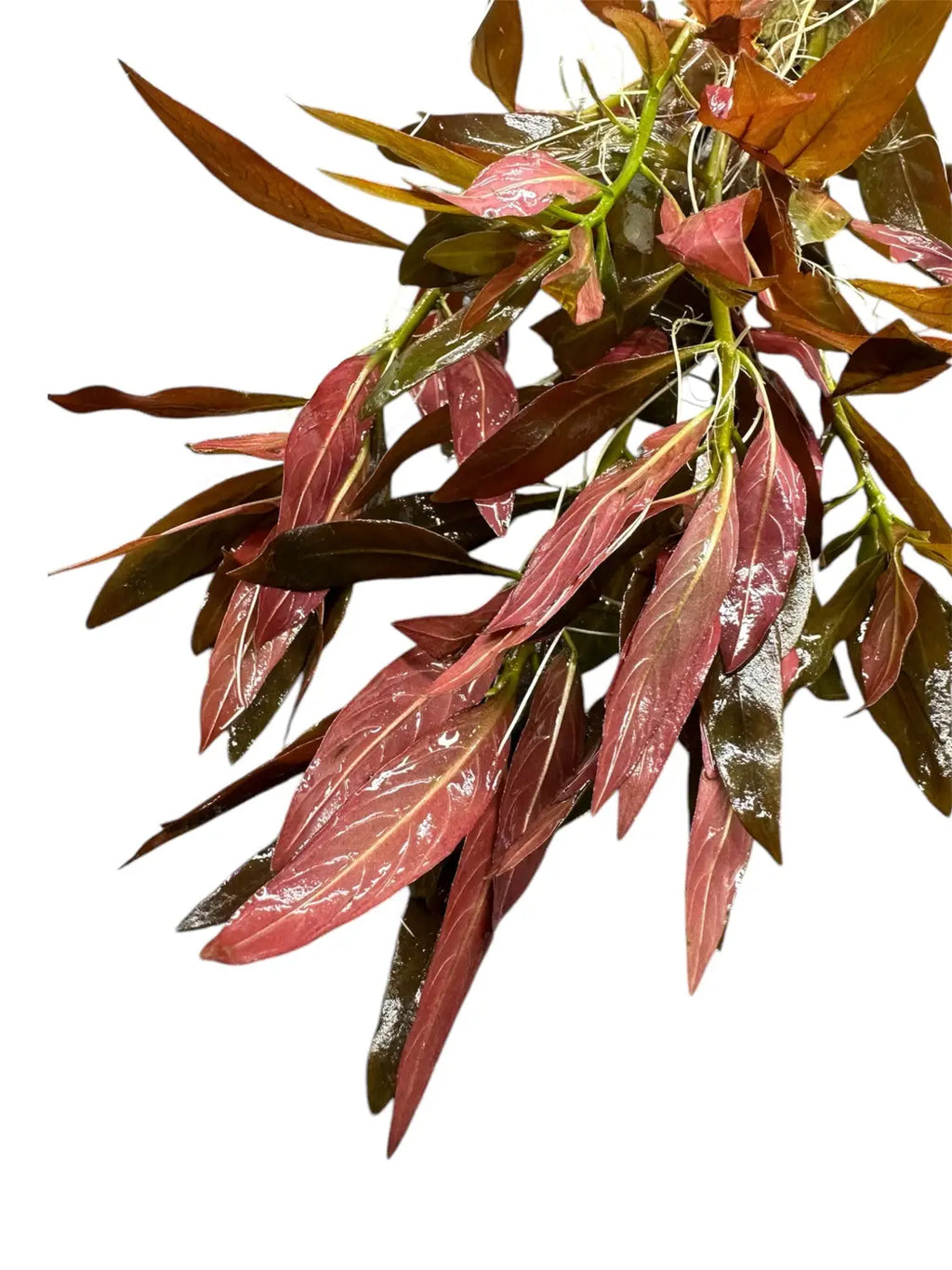 Ludwigia Peruensis, also known as Ludwigia Glandulosa, is a mid-ground/background plant native to North, Central, and South America. This unique plant is quite rewarding when grown properly and can tolerate different water parameters. When grown submersed this plant develops medium, elongated spade-like leaves that are bright red. Its coloration is absolutely stunning.