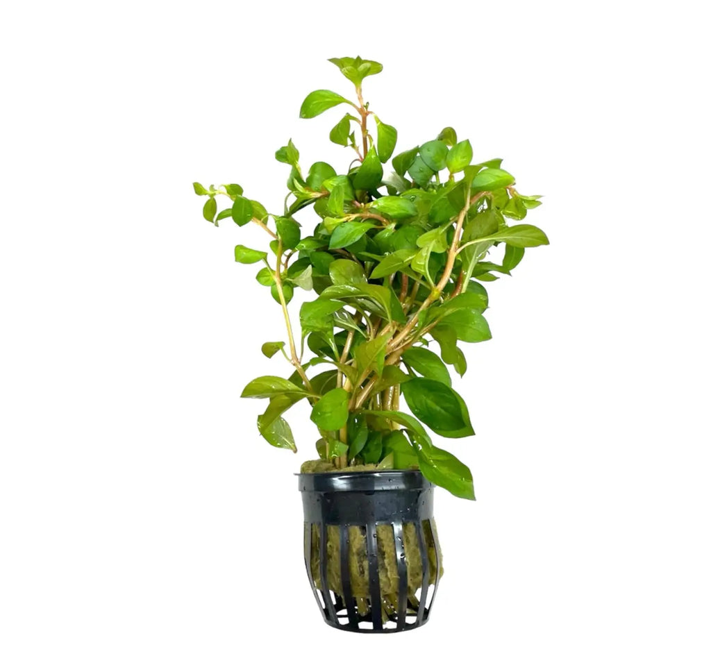 Broad-Leaf Ludwigia (Ludwigia Repens), also knows as Water Primrose is an aquatic plant that originates from Central and North America. This plant is quite common but that doesn't stop even the best and most experienced AquaScapers from using it. It;s a very attractive plant that has spade shaped leaves ranging in a variety of colors from light green to dark green and from brown to red. The leave's underside also reveals a very nice pink coloration. It benefits from weekly doses of Iron and Trace Elements.