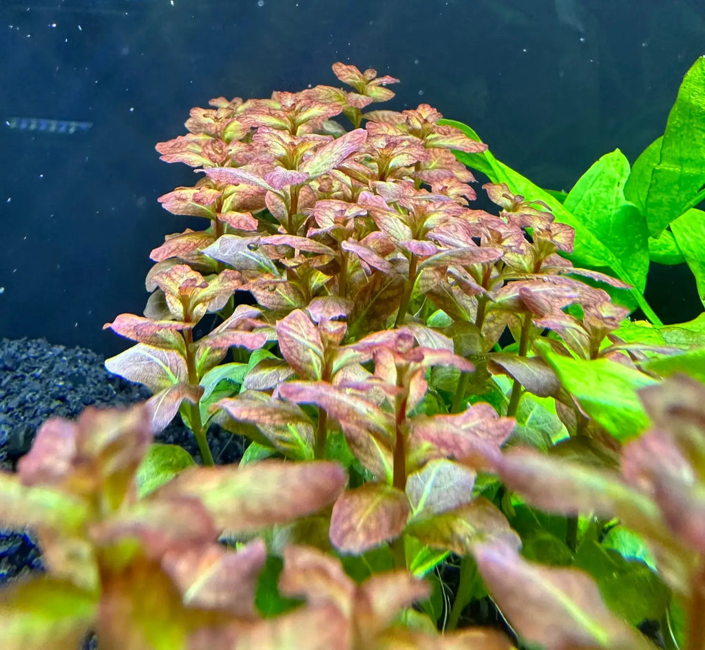 Ludwigia Senegalensis, also known as Ludwigia sp. 'Guinea, is a mid-ground plant native to Africa. This unique plant is quite rewarding when grown properly due to it's stunning coloration - it develops round leaves that are dark orange with super red veins. The dark orange coloration intensifies and becomes a more pronounced red when grown under high light.
