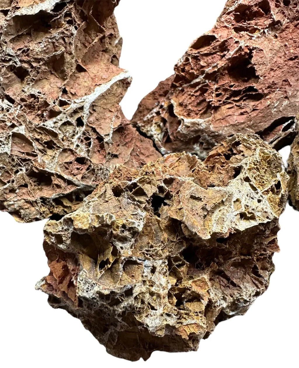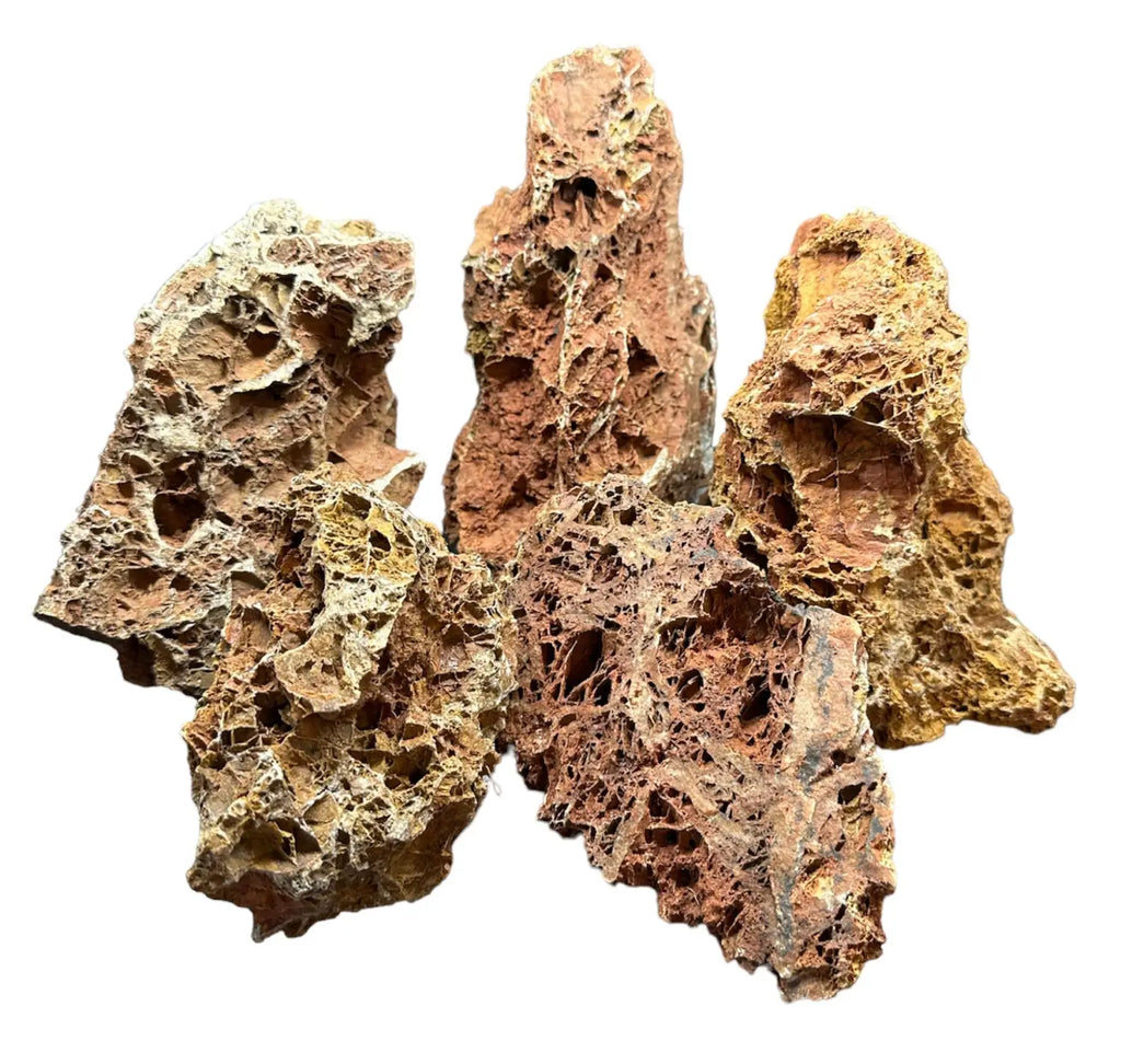 Rich Color Palette: The stone is typically found in warm tones of reddish-brown, tan, and orange, with some variations in color, providing a rich, earthy aesthetic that pairs beautifully with green plants and colorful fish.