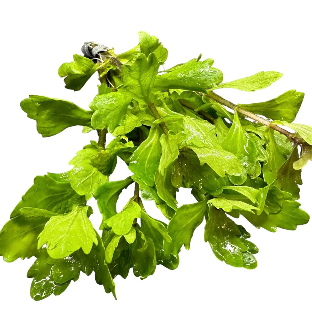 Also knows as Shinnersia Rivularis, Mexican Oak Leaf is a mid-ground/background plant native to Central America. This unique plant is quite rewarding when grown properly and can tolerate different water parameters. When grown submersed this plant develops broad, wrinkled, light green/pink leaves that are unlike any other plant. Should be trimmed regularly. This plant can be easily propagated by simply cutting of the stem and replanting it on the substrate.