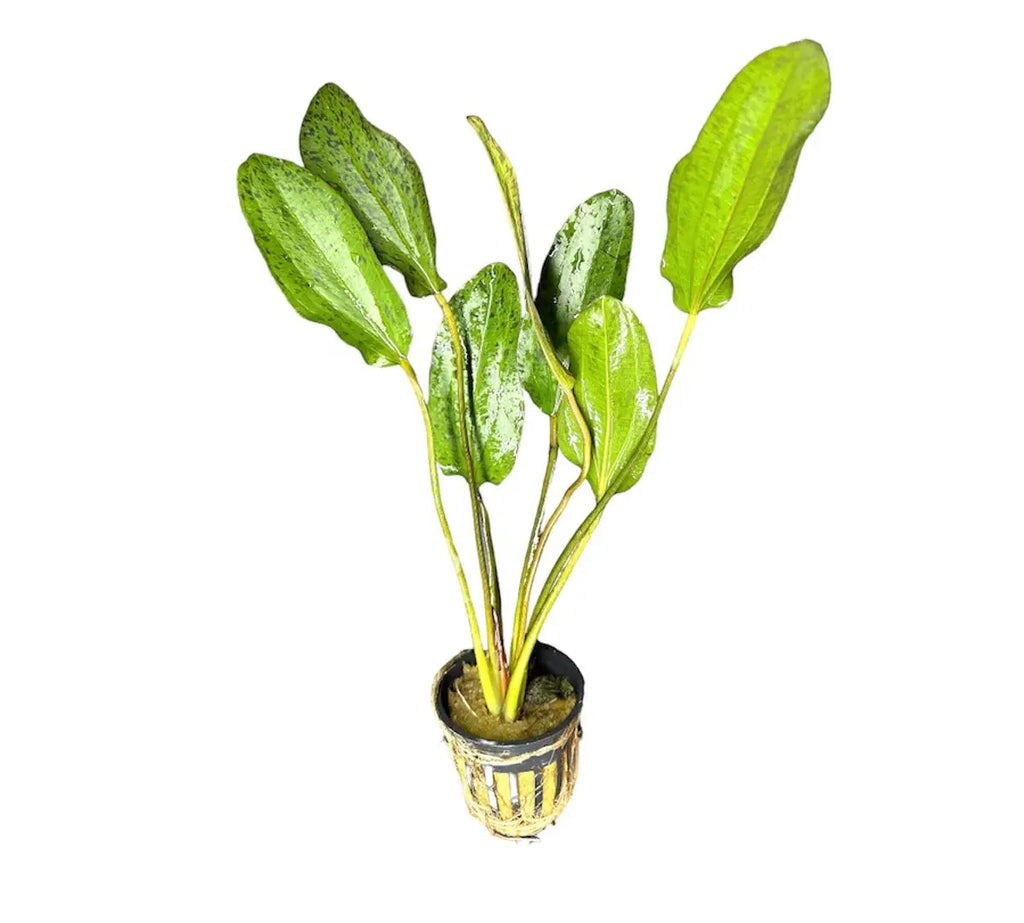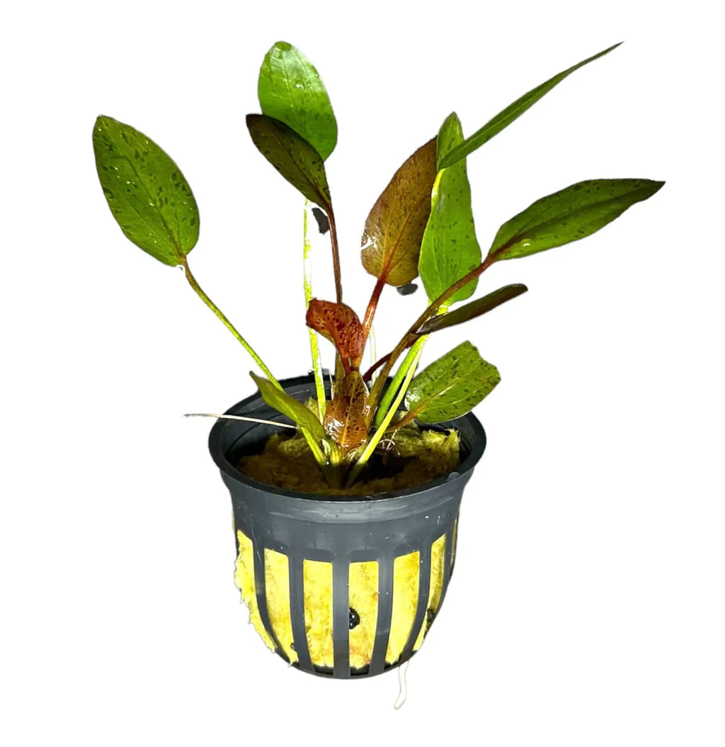 Echinodorus Ozelot Red, or just commonly knows as Red Ozelot Sword, is a stunning, elegant plant that will enrich any aquarium. Its foliage is like no other - this green plant features broad leaves with red marbling speckles all over it - once completely submersed, the red ozelot sword will start to develop new growth which will be of a strong copper/reddish coloration. Native from North, Central, and South America, this amphibious plant will grow out of water if not pruned from time to time.