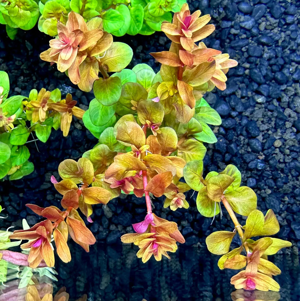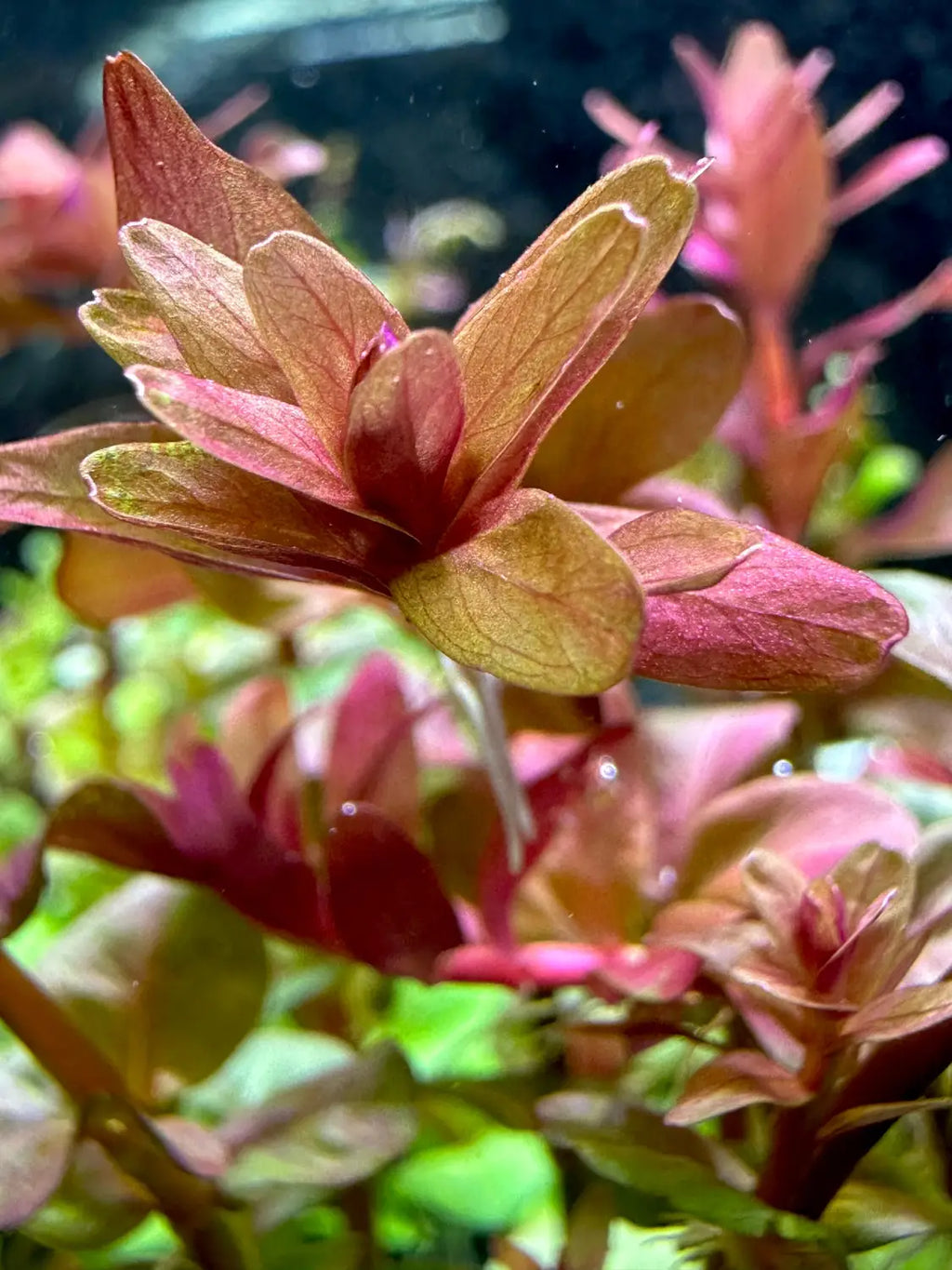 Rotala Macrandra, is a mid-ground/background plant native to Asia. This unique plant is quite rewarding when grown properly and can tolerate different water parameters. When grown submersed this plant develops small and narrow, pink-redish leaves. Should be trimmed regularly. This plant can be easily propagated by simply cutting of the stem and replanting it on the substrate.