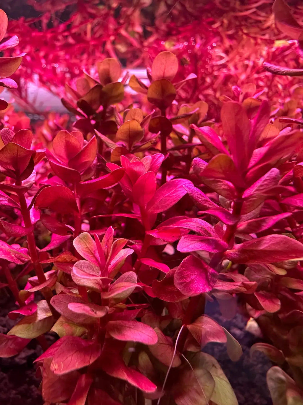 Rotala Macrandra Mini Pink, is a mid-ground/background plant native to Southeast Asia. This unique plant is extremely rewarding when grown properly. When grown submersed this plant develops small, super bright red leaves that are oval in shape. Weekly ferts are a must.