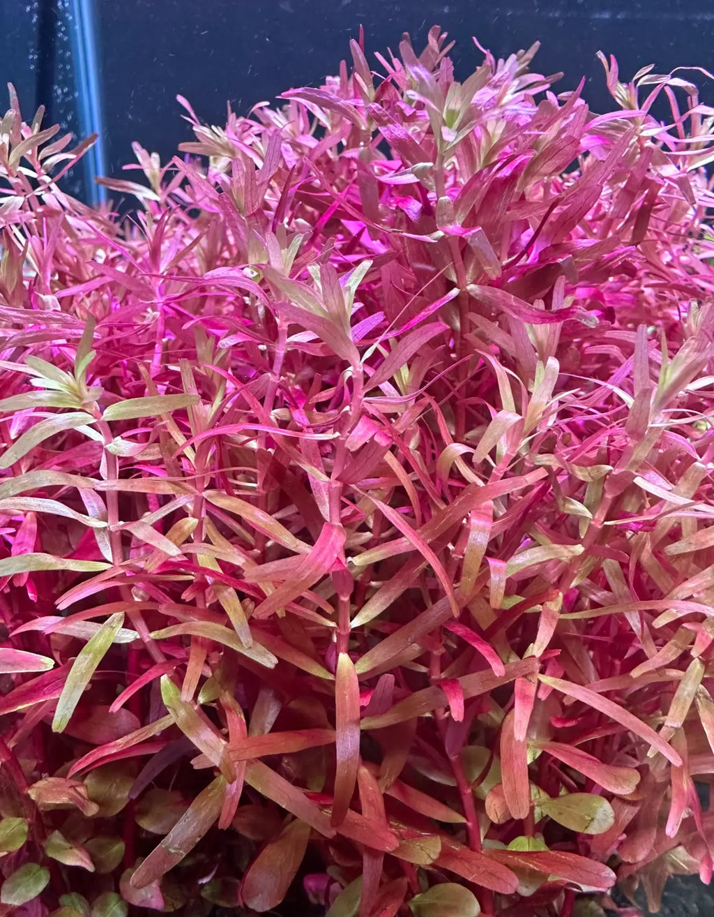 Rotala Magenta, is a mid-ground/background plant native to Asia. This unique plant is quite rewarding when grown properly - Rotala Magenta is a narrow leaf variation of Rotala macrandra. When grown submersed this plant develops small and narrow, pink-redish leaves. This plant benefits from high lighting and injected co2.